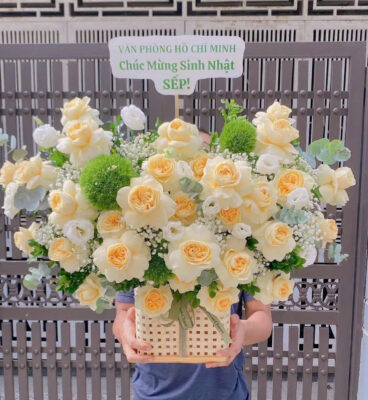 Lưu ý: Đây là sản phẩm hoa tươi tự nhiên nên có thể có chút khác biệt theo các mùa trong năm. Cách gói, giấy gói như hình, màu sắc hoa có thể có chênh lệch đậm nhạt 1 phần, ruy băng có thể khác, độ nở ko cố định, cách xếp hoa, loại hoa, dáng cắm, dáng gói, các tỉ lệ sẽ tương đương 85-90% vì làm thủ công, phụ thuộc theo mùa và hoa về trong ngày. Trường hợp không đủ số lượng hoa như mẫu đã chọn, nhân viên tư vấn sẽ liên hệ với Quý khách hàng để lựa chọn mẫu hoa thay thế phù hợp.